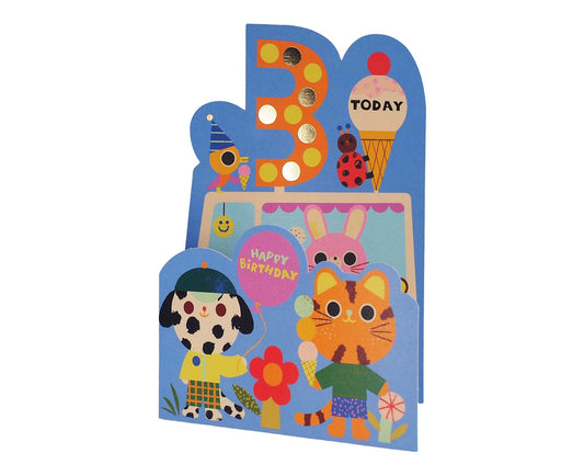 Fold Out Animal Ice Cream Van Foiled 3rd Birthday Card