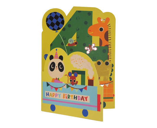 Fold Out Animal Train Foiled 4th Birthday Card