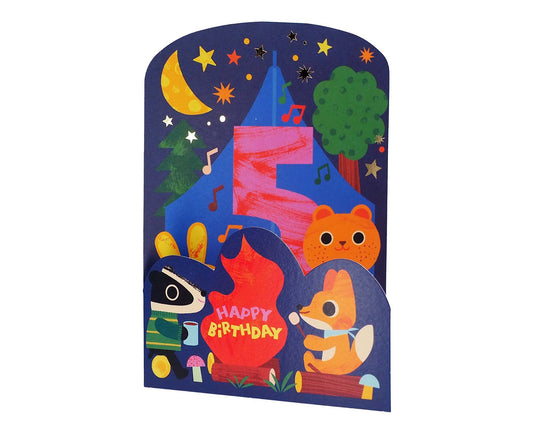 Fold Out Camping Animals Foiled 5th Birthday Card