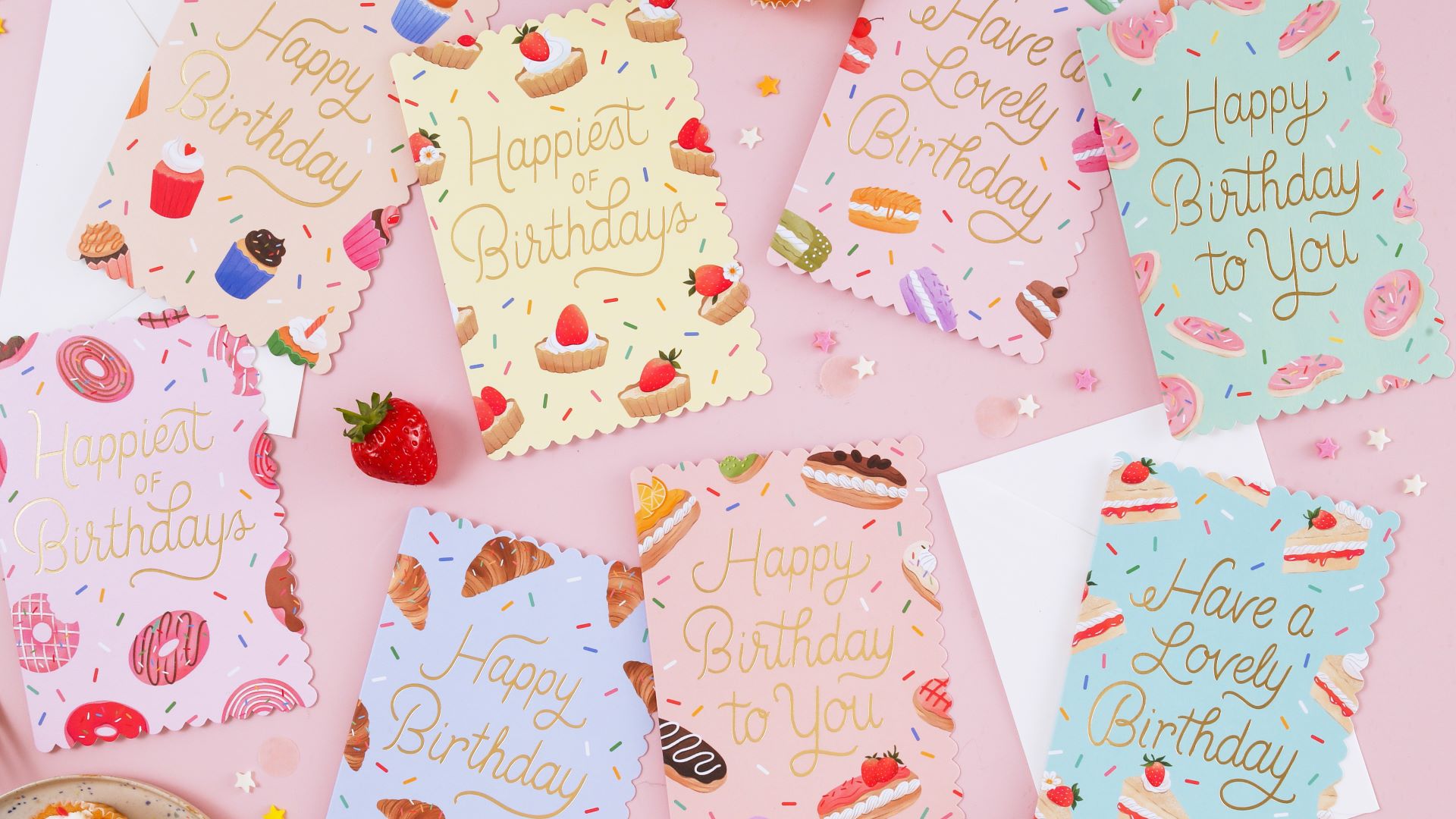 These gorgeous cake and pastry themed cards from Ricicle Cards really do look god enough to eat, with gold foiled text and delicate scalloped edges.
