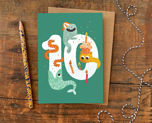 Number 10 Crazy Critters 10th Birthday Card
