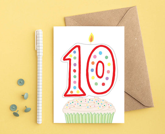 Number 10 Candle 10th Birthday Card