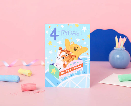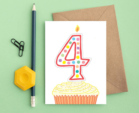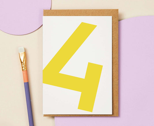 Number 4 Tiddly Gold Number Card Fuschia Pink