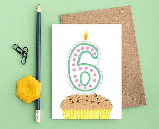 Number 6 Candle 6th Birthday Card