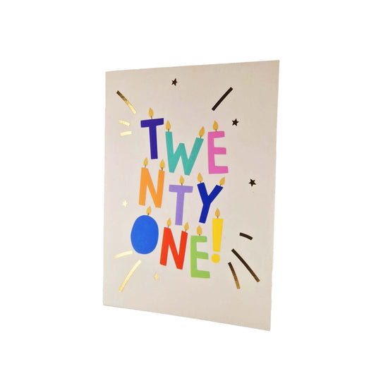 Gold Foiled Twenty One! Letter Candles Birthday Card