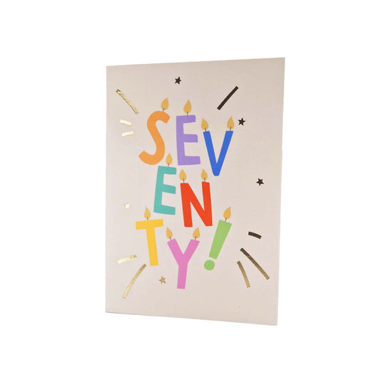 Gold Foiled Seventy! Letter Candles Birthday Card