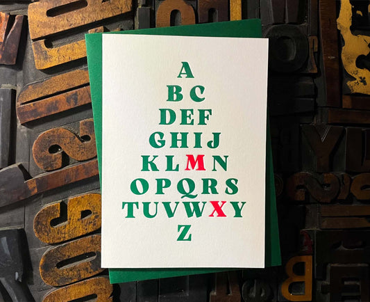A-Z Christmas Tree Typography Letterpress Christmas card