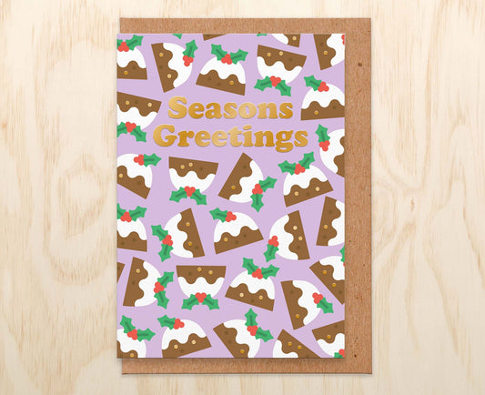 Christmas Pudding Seasons Greetings Gold Foiled Christmas Card