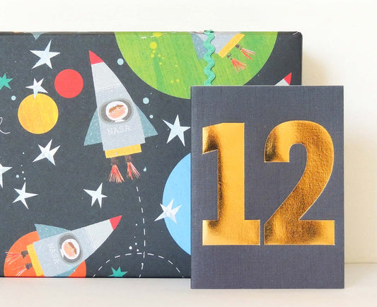 Number 12 Tiddly Gold Number Card Midnight Blue