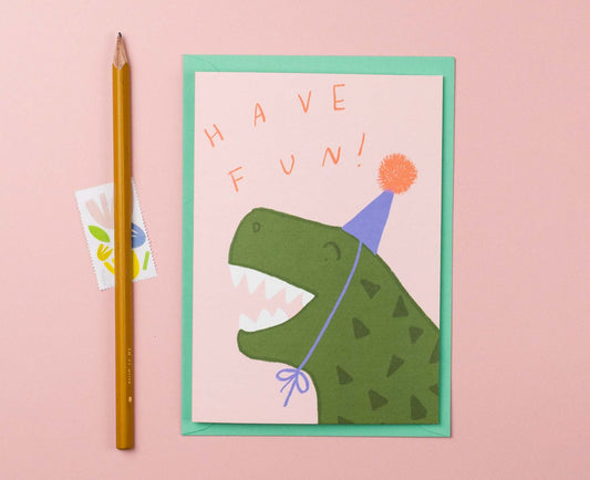T-Rex Have Fun Illustrated Dinosaur Birthday Card