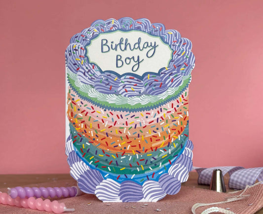 Birthday Boy Sprinkles Spot Varnish Cutout Cake Birthday Card
