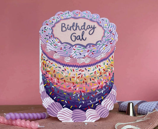 Birthday Gal Sprinkles Spot Varnish Cutout Cake Birthday Card