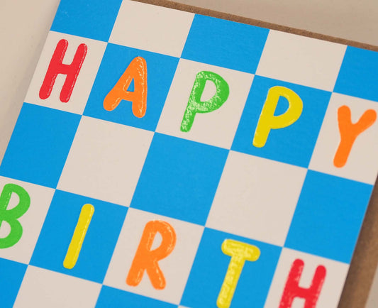 Happy Birthday Chessboard Embossed Neon Birthday Card