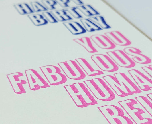 You Fabulous Human Being Letterpress Birthday Card