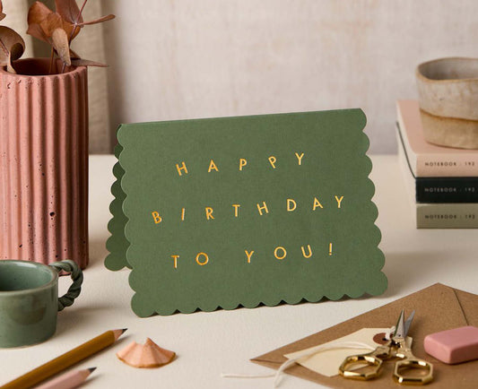 Scallop Gold Foiled Green Birthday Card