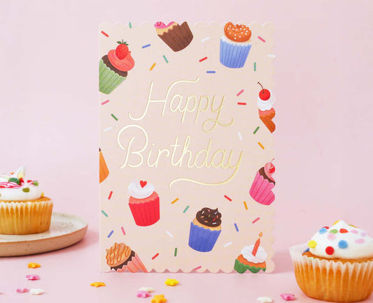 Cupcake Happy Birthday Foiled Scalloped Birthday Card