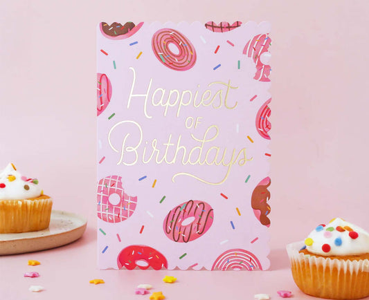 Doughnut Happiest of Birthdays Foiled Scalloped Birthday Card