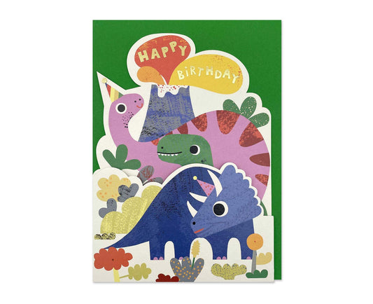 Fold Out Dinosaur Foiled Kids Birthday Card