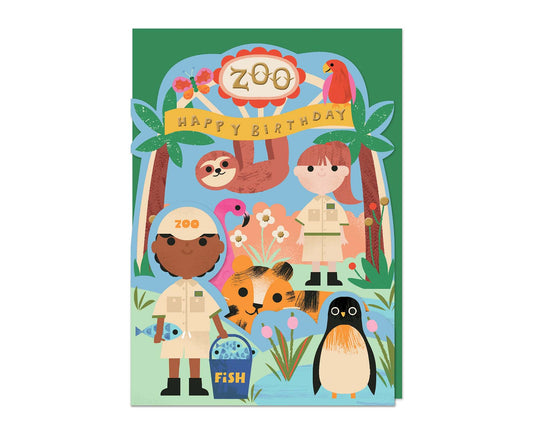 Fold Out Jungle Animals Foiled Kids Birthday Card