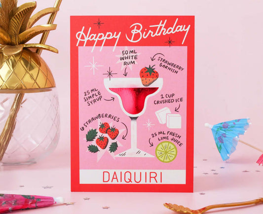 Strawberry Daquiri Cocktail Foiled Birthday Card