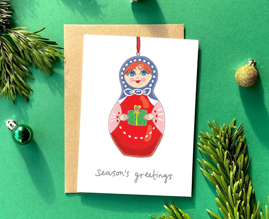 Matryoshka Russian Doll Bauble Kitsch Christmas Card