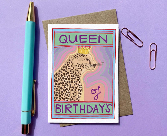Queen of Birthdays Leopardess Matchbox Mini Birthday Card