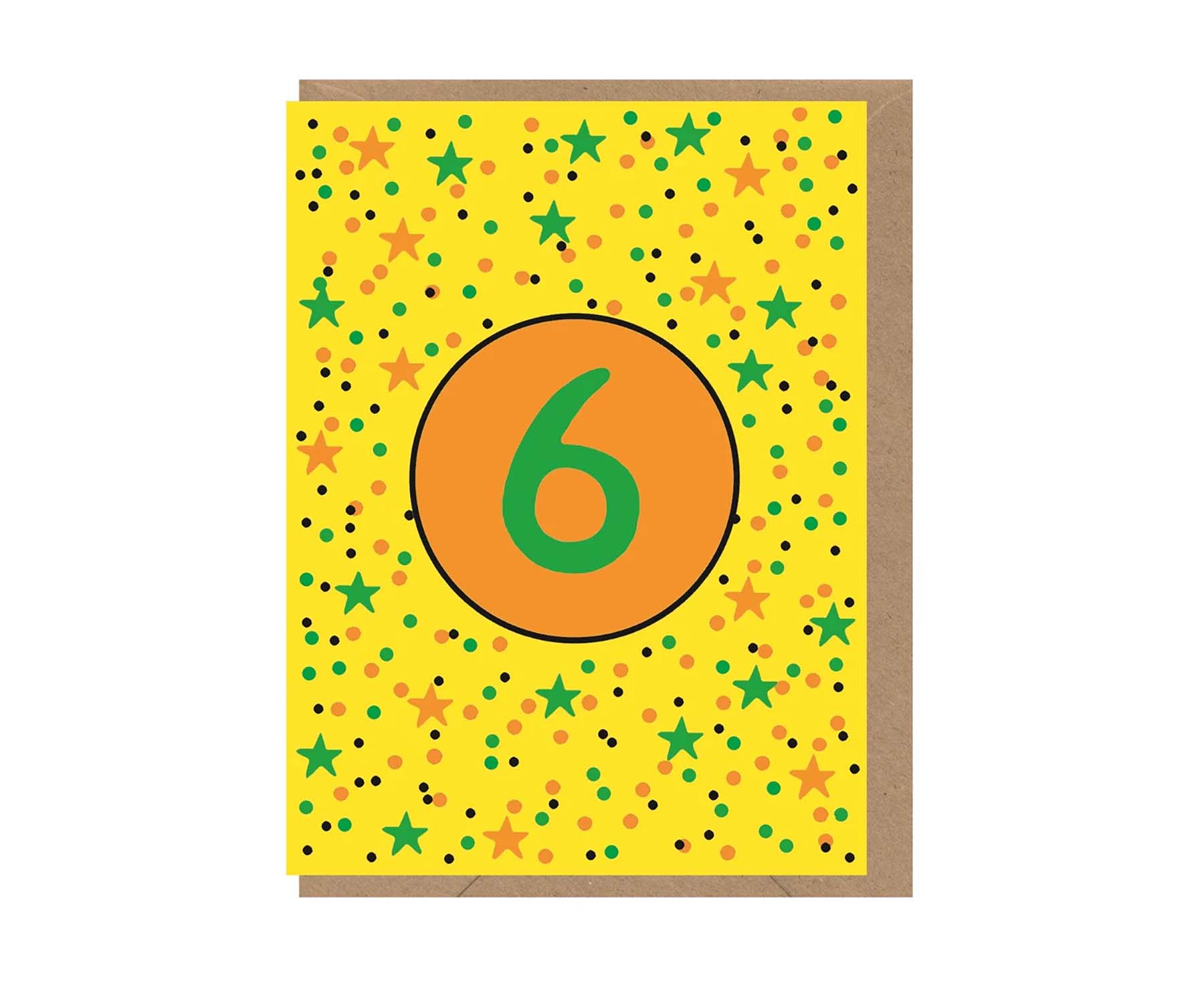 Part of Earlybird's fabulous range of neon mini cards with glorious embossing and spot UV, this mini sixth birthday card is covered in spots and stars and a number 6!