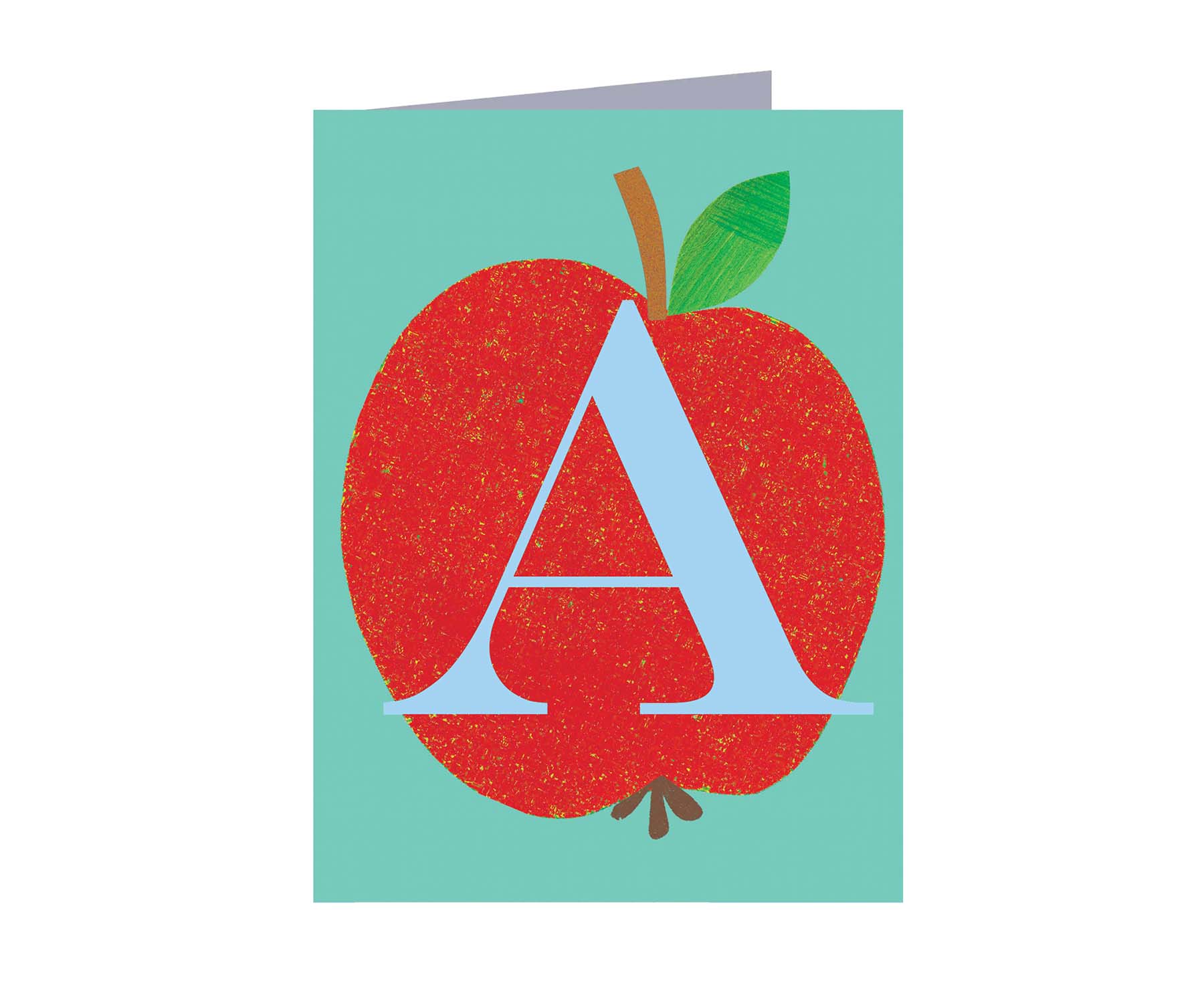 This beautifully drawn A for Apple mini letter card is part of Kali Stileman's fabulous Tiddly Letter range, printed on tactile and lovely linen textured card. Their dinky size (and price) makes them ideal to combine into names or words to go on a little one's wall or shelf!