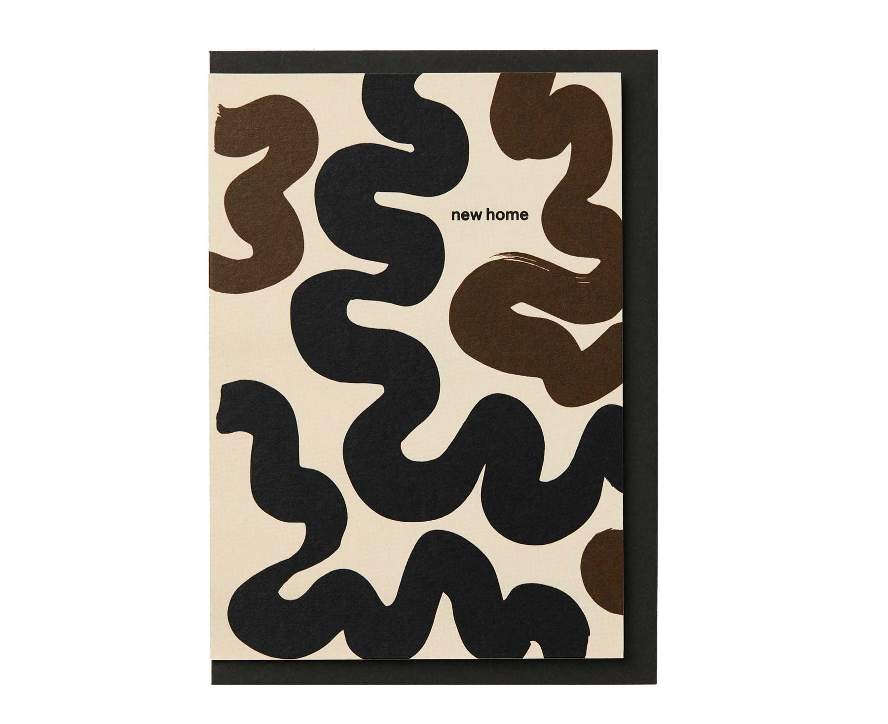 A beautiful new home card with abstract black and brown handpainted squiggles. It is one of Kinshipped's range of gorgeous cards in contemporary neutral tones.