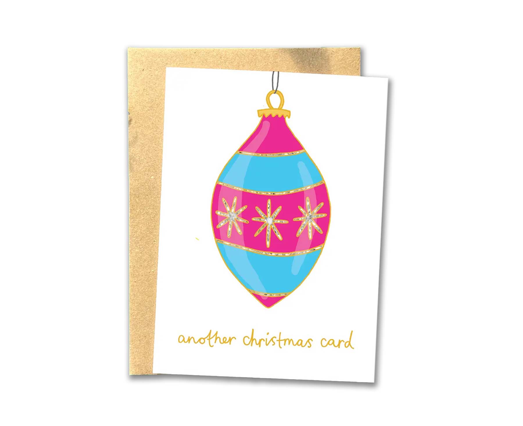This fun retro pink and blue bauble Christmas Card humbly proclaims that it's just 'another chrsitmas card.' It's hand drawn by Pembrokeshire based You've Got Pen On Your Face and printed in the UK.