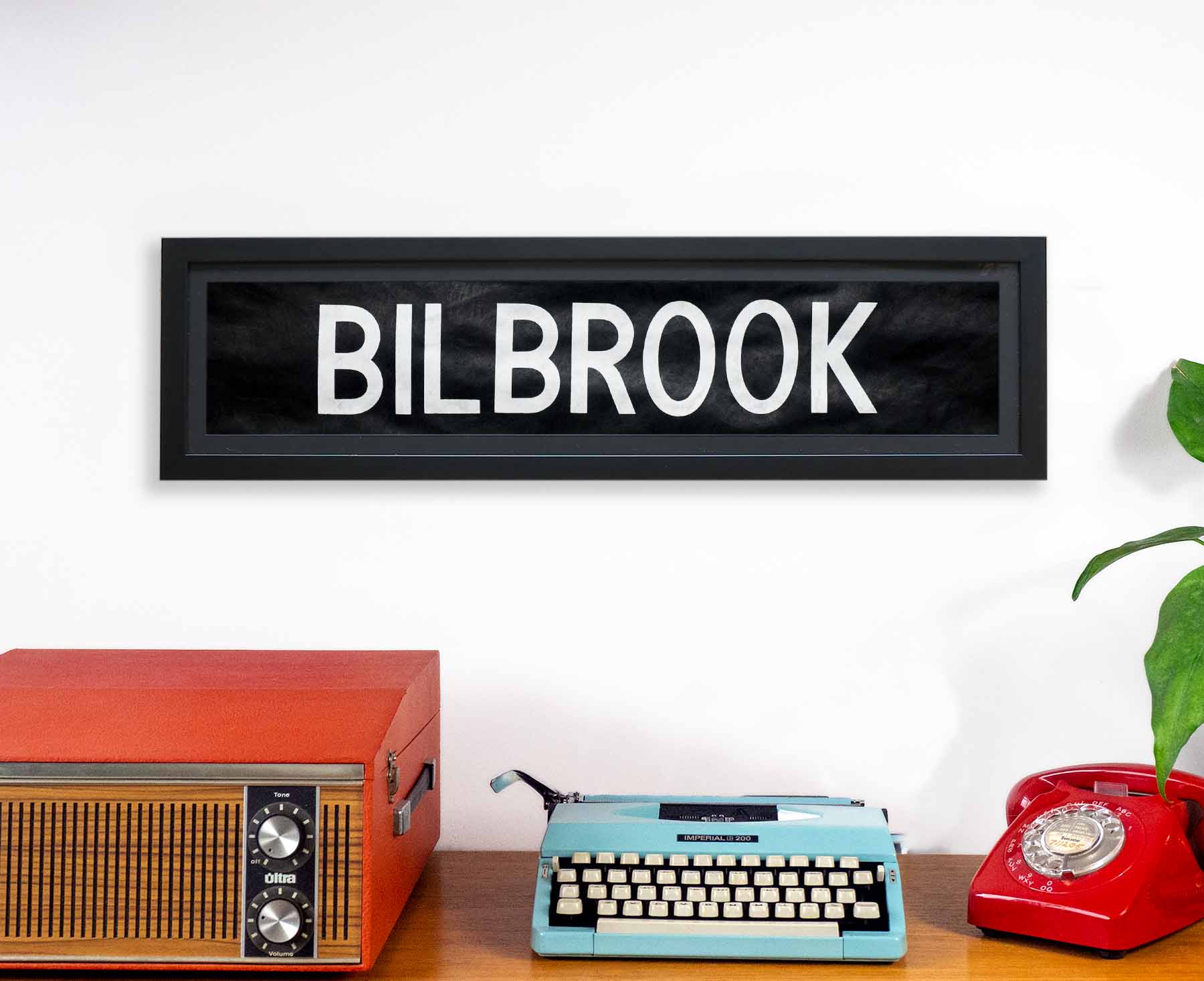 Situated right on the edge of what is considered to be the West Midlands, Bilbrook is a village in Staffordshire, close to Wolverhampton. This Bilbrook Park bus blind comes from the upper blind used on a Wolverhampton bus in the 1980s.