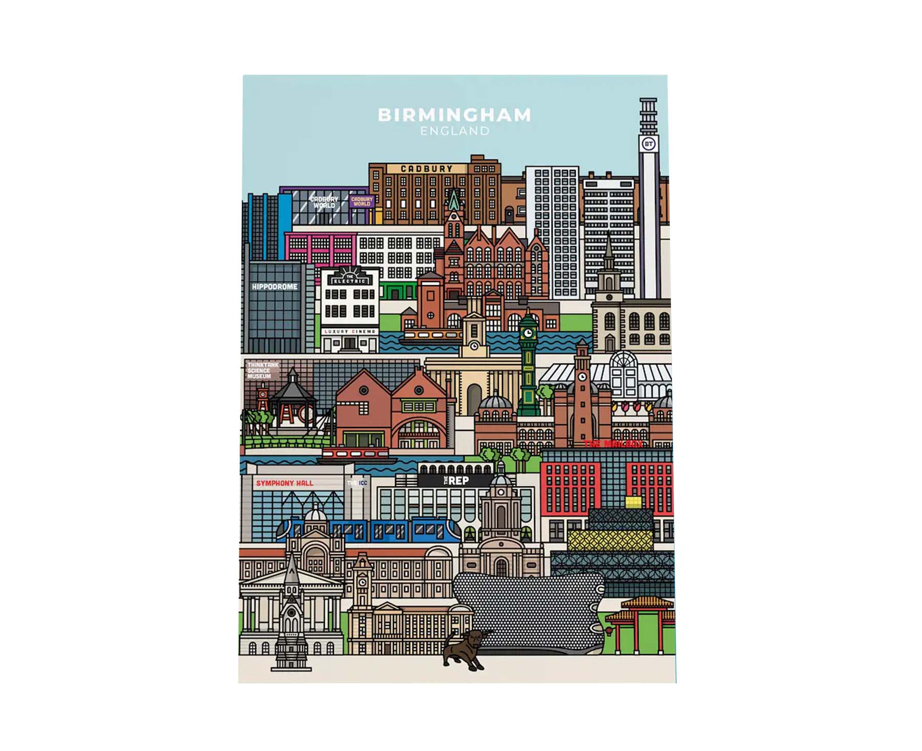 Featuring Hannah Kirkland's graphical and stylish take on the famous sights of Birmingham, this beautiful print will have you spotting something different every time you look at it.
