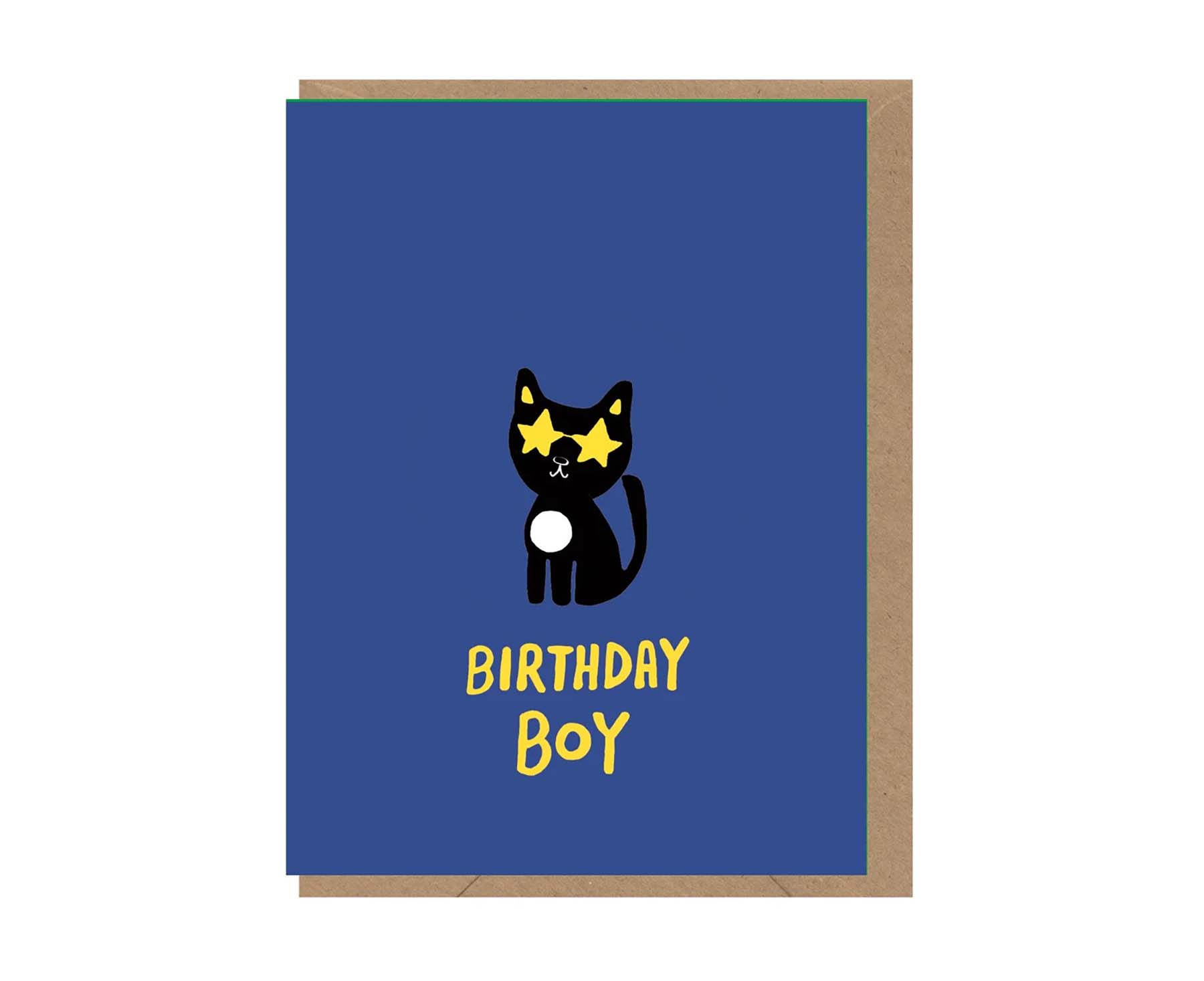 Part of Earlybird's fabulous range of neon mini cards with glorious embossing and spot UV, this cute Birthday Boy birthday card features the cutest little cat with stars in his eyes.