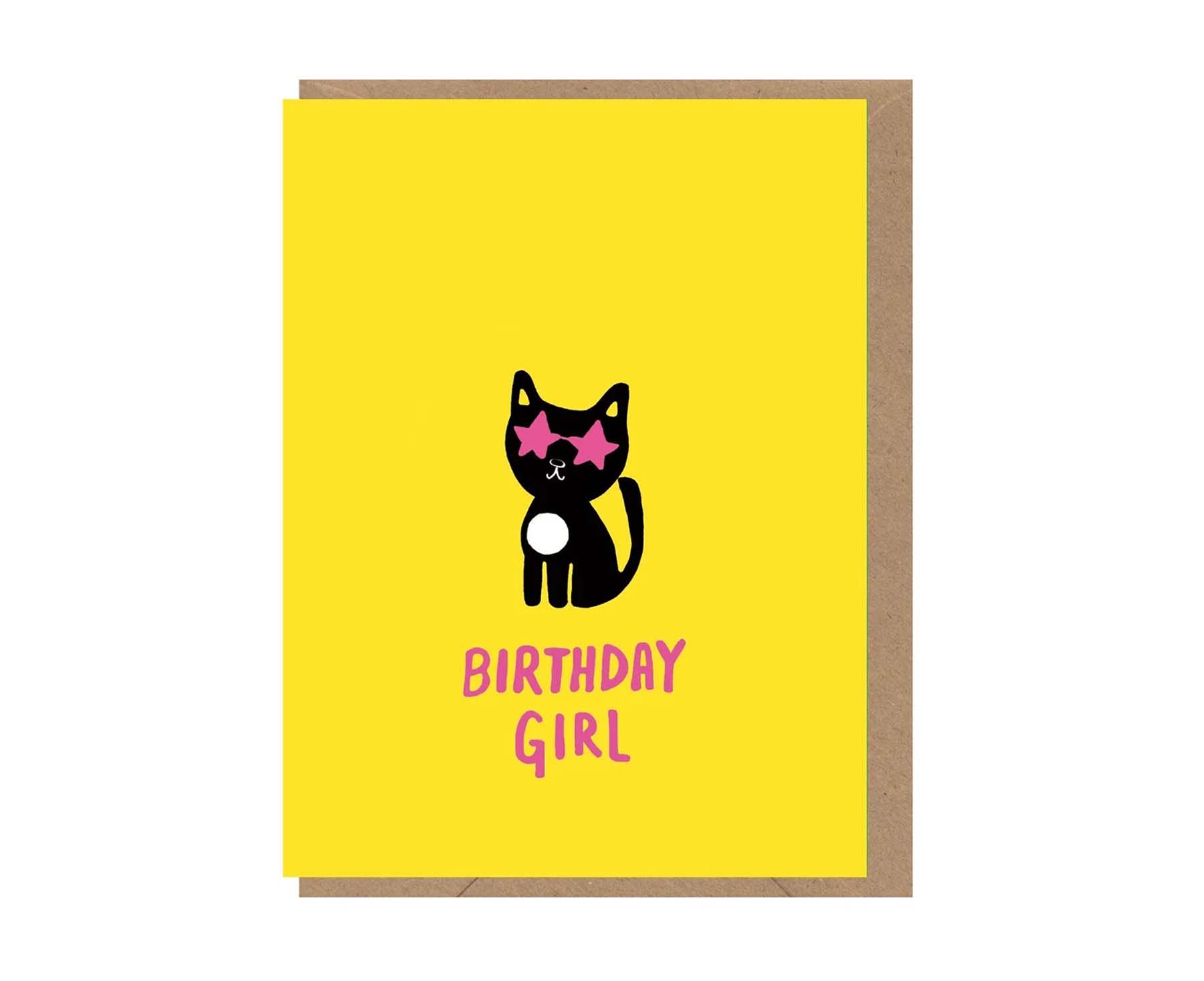 Part of Earlybird's fabulous range of neon mini cards with glorious embossing and spot UV, this cute Birthday Girl birthday card features the cutest little cat with stars in her eyes.