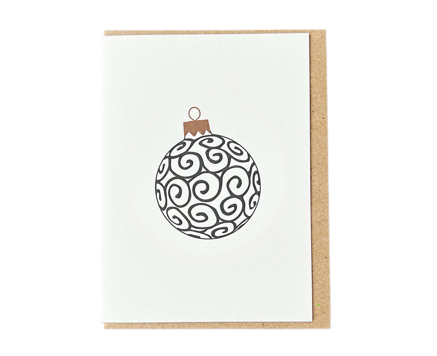Part of a range of the gorgeous A7 mini Bauble Christmas cards, this one features a white bauble with a black swirls pattern. Their size makes them perfect as gift tags too. All Penguin Ink cards are Letterpress printed in England using a traditional Heidelberg press, giving them a tactile embossed finish on a thick textured card stock.