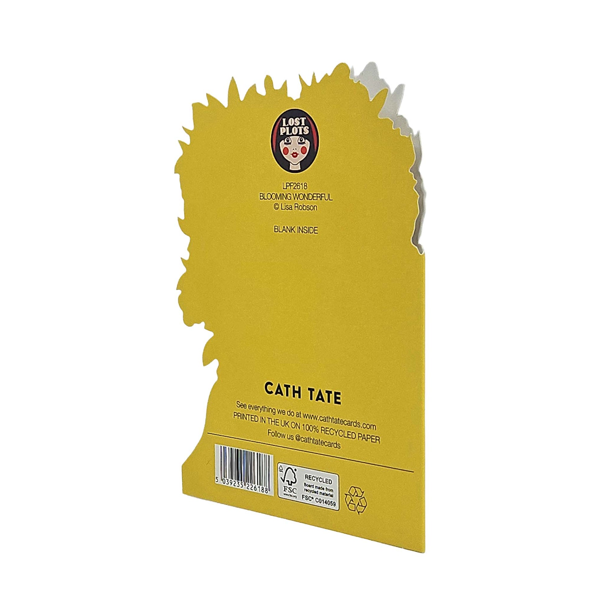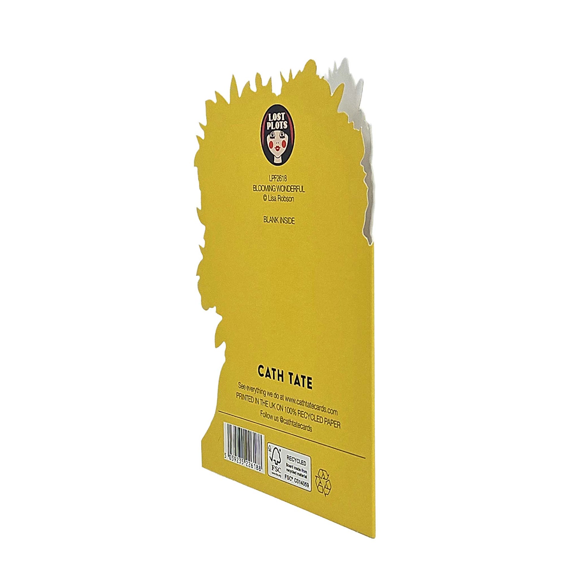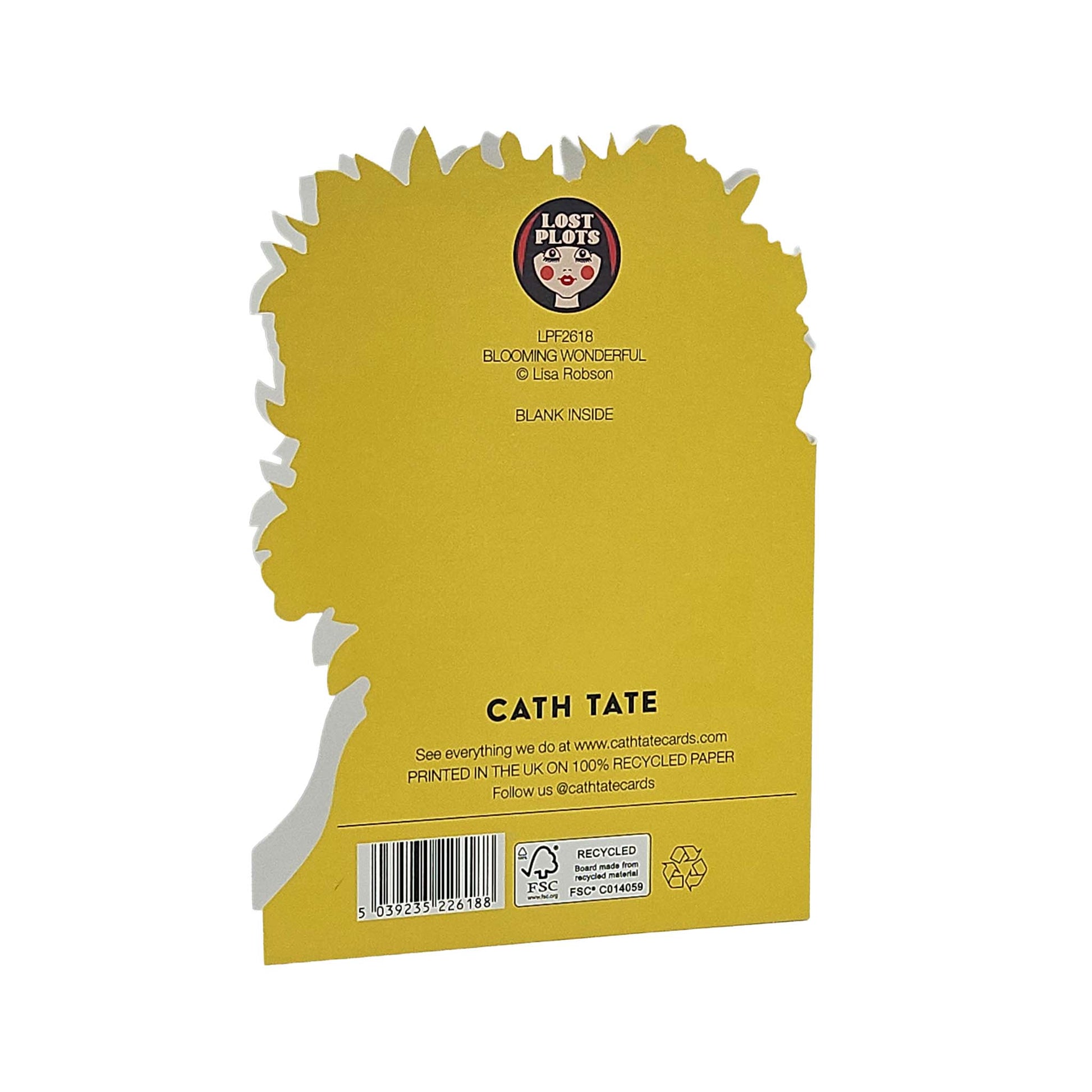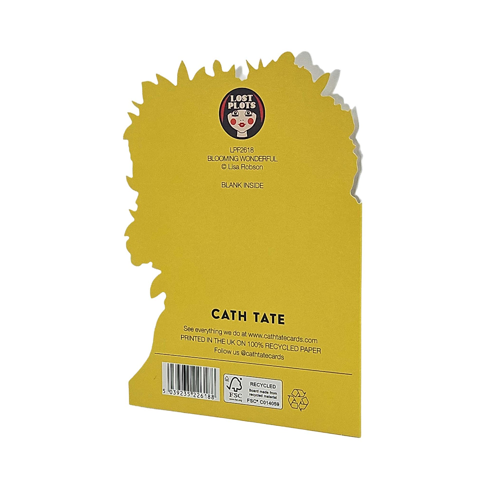 Part of Cath Tate's collaboration with artist Lisa Robson, this retro inspired cutout card has psychedelic vibes with its vase full of colourful flowers and the caption 'You are blooming wonderful.' It's ideal for many occasions, as a birthday card, good luck card, congratulations card or just to say hello in a colourful cheery way!