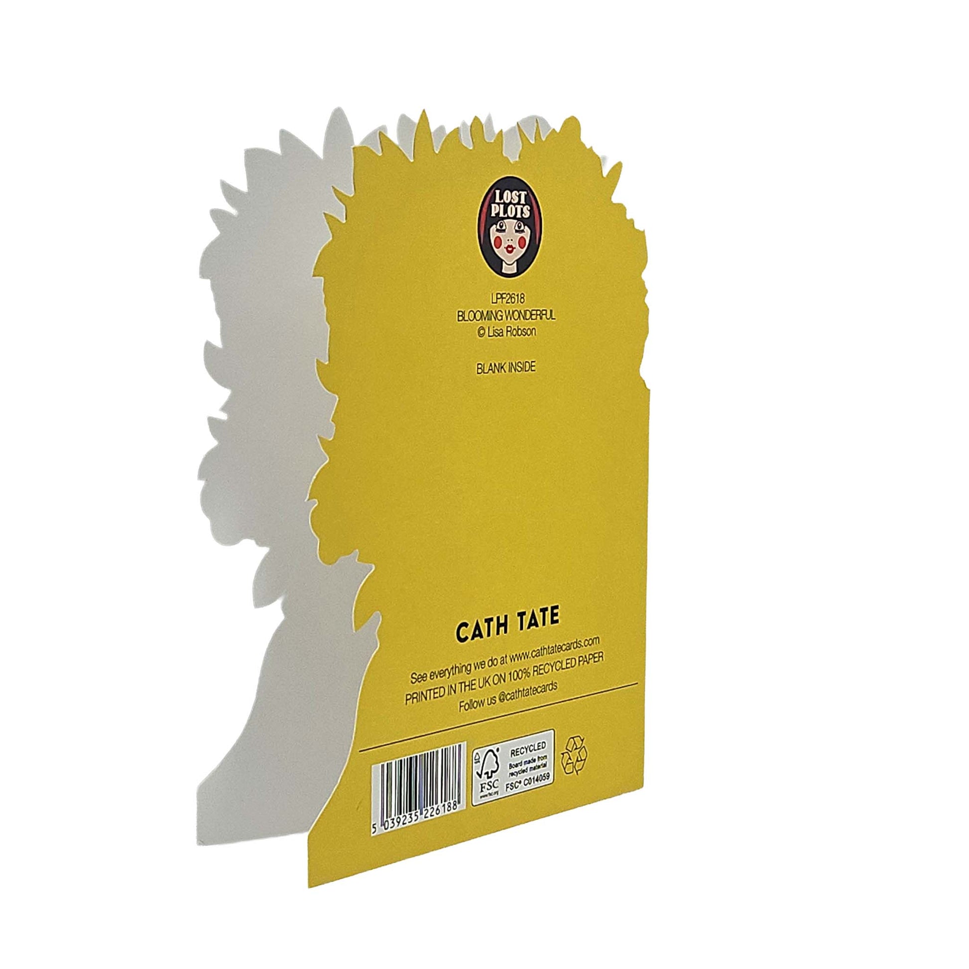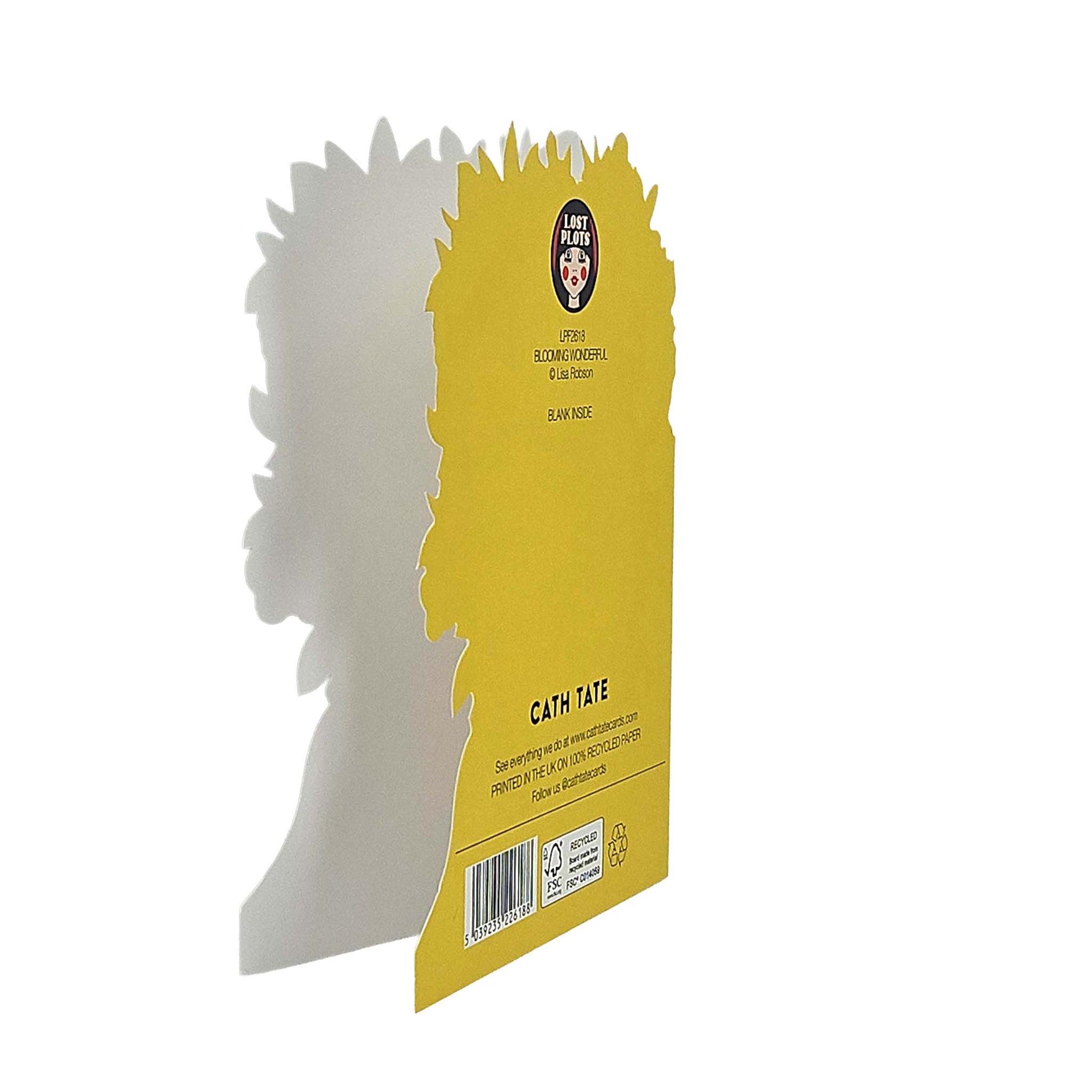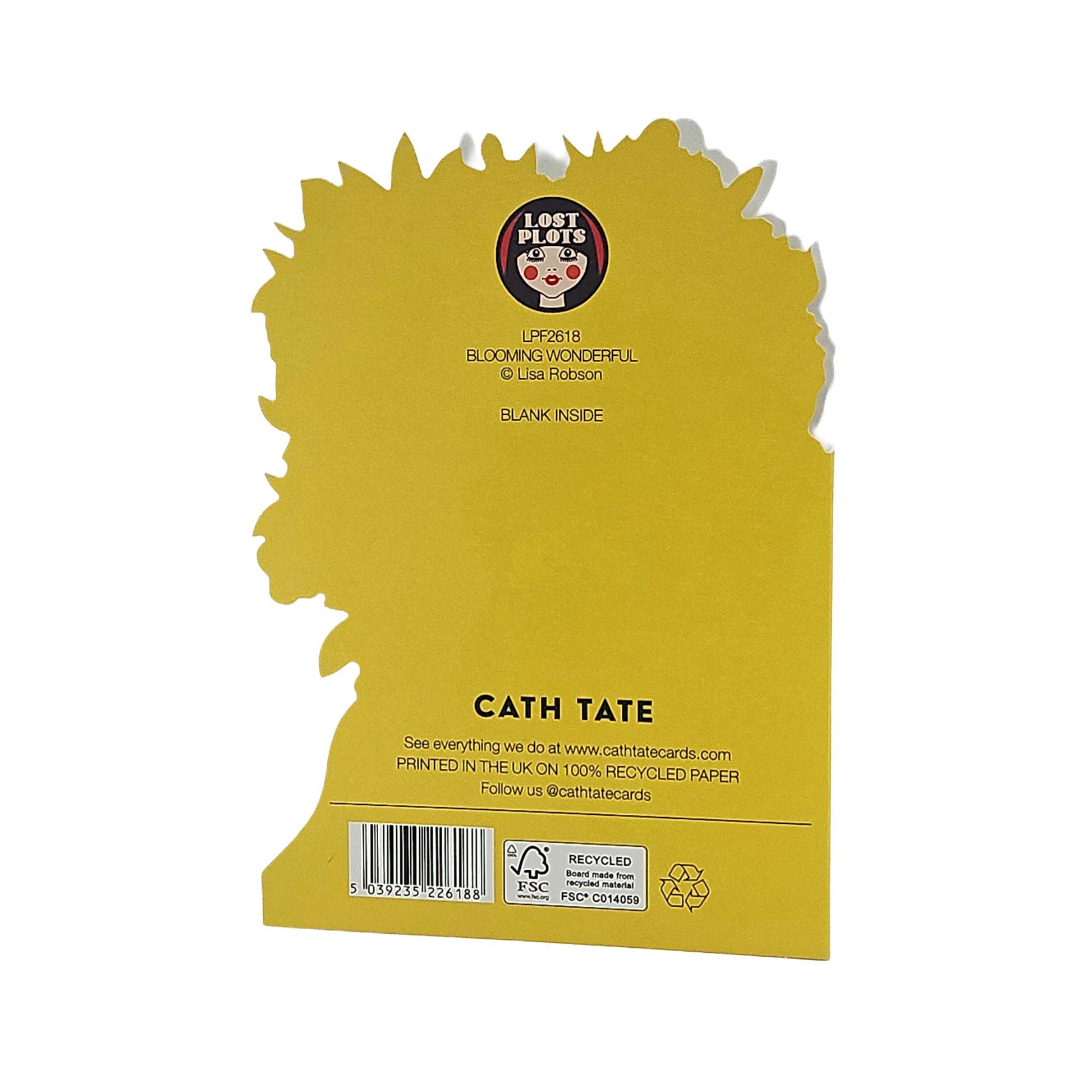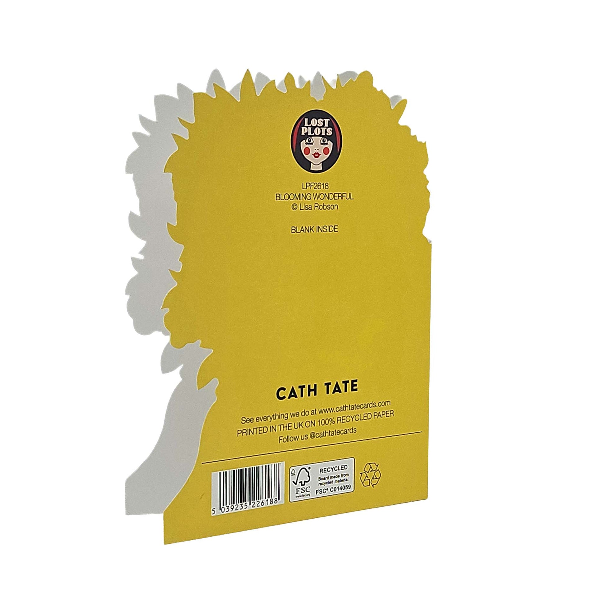 Part of Cath Tate's collaboration with artist Lisa Robson, this retro inspired cutout card has psychedelic vibes with its vase full of colourful flowers and the caption 'You are blooming wonderful.' It's ideal for many occasions, as a birthday card, good luck card, congratulations card or just to say hello in a colourful cheery way!