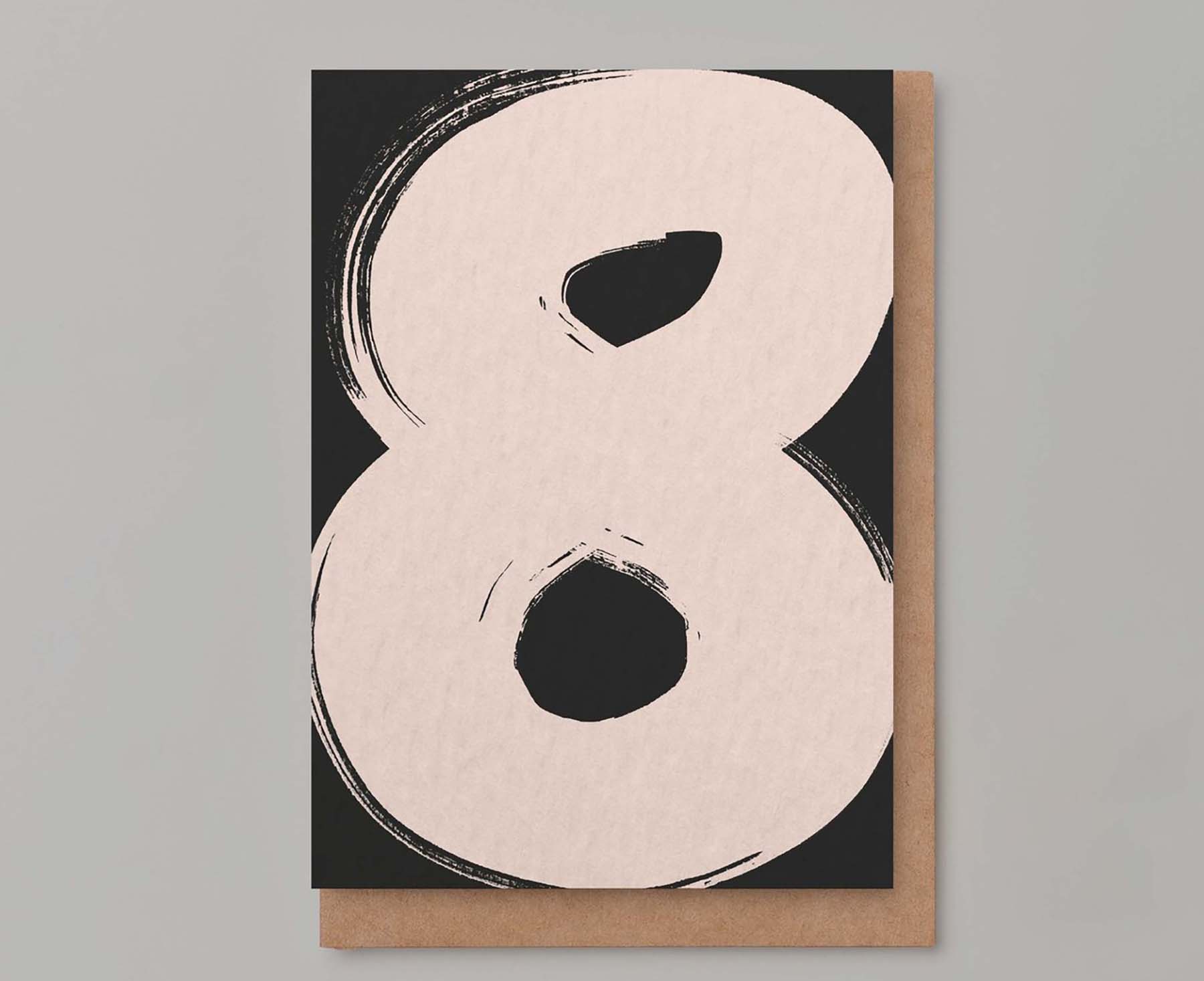 This 8th Birthday card is one of Kinshipped's beautiful Brush Numbers range, each featuring a hand brushed number design.