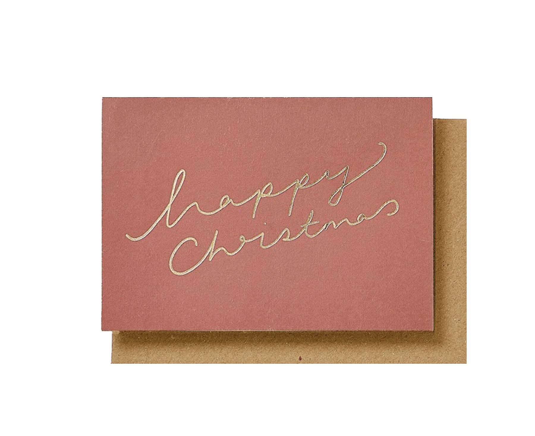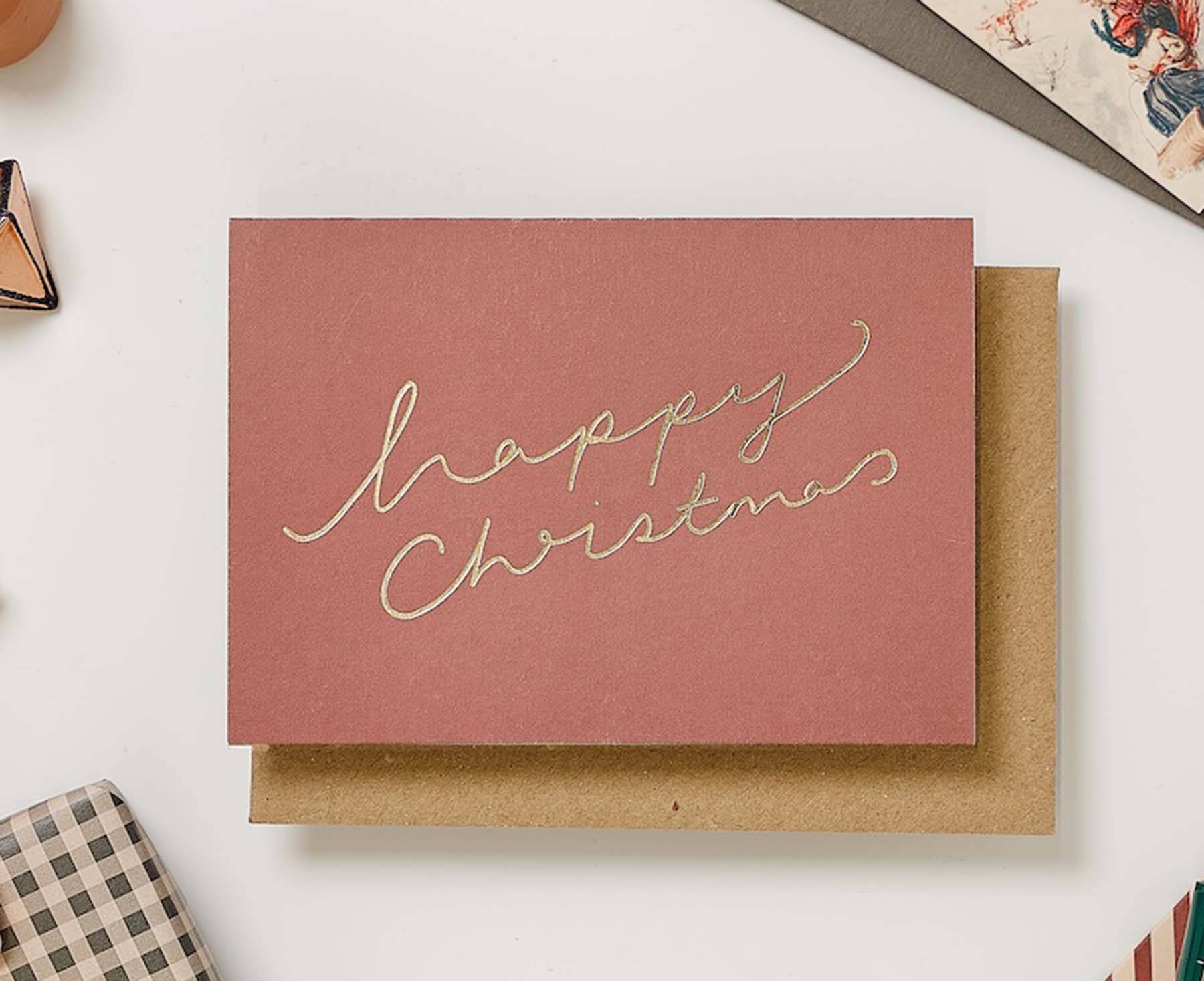Burgundy Happy Christmas Gold Foiled Christmas card