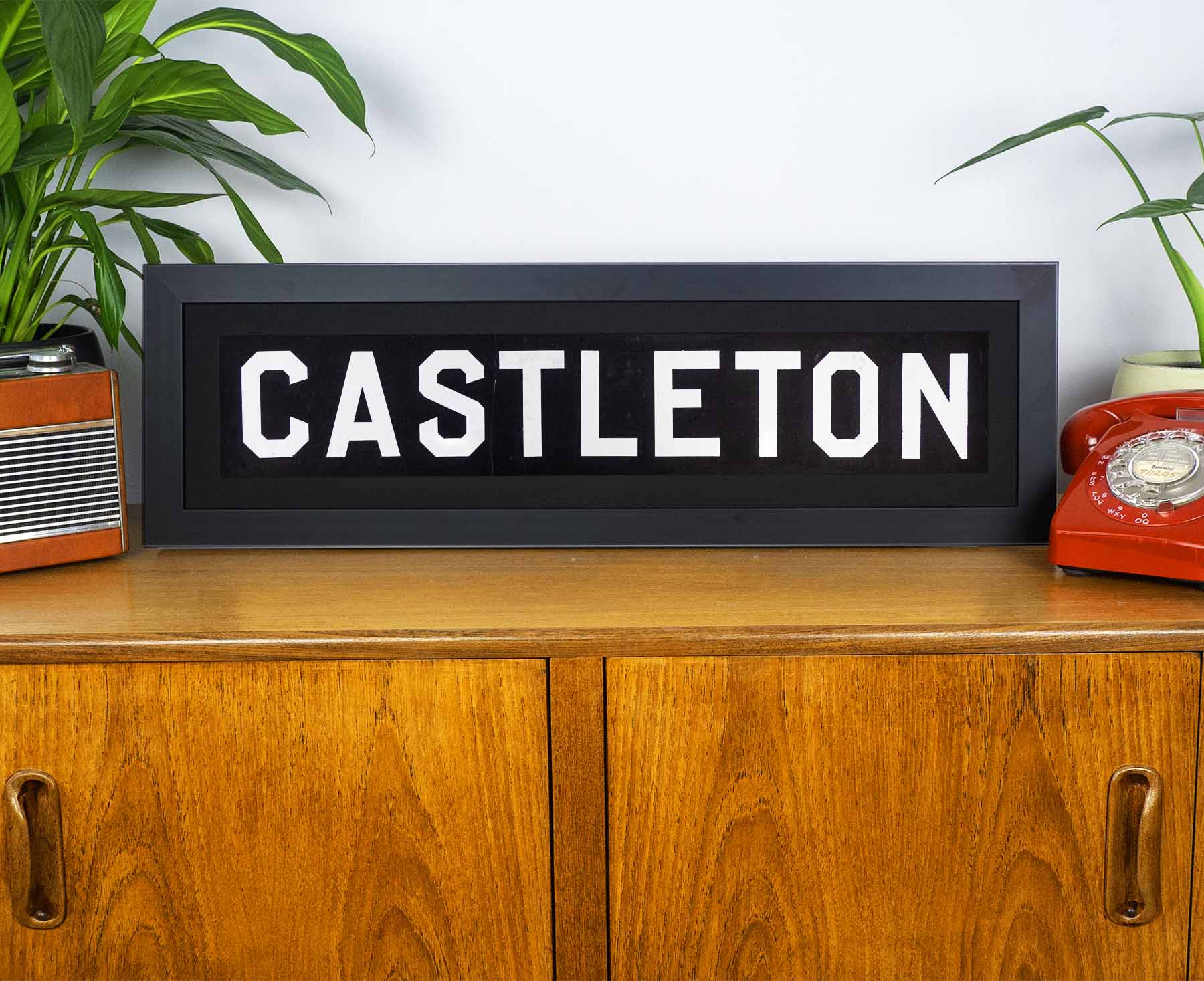 A little more compact in size than the standard bus blinds at 71cm wide, this 60s original is printed on an early tyvek type material, giving an incredibly crisp finish with a slight gloss shine to the lettering. It is in good condition for its age.