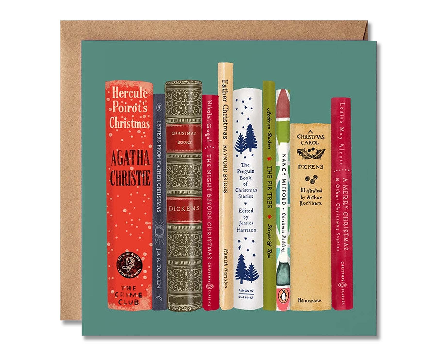 Expertly illustrated by Norfolk based Design Smith, this novel (pun intended) square Christmas card features a selection of festive fiction favourites, making it perfect for any book lover. It's printed on a heavyweight uncoated card and comes with a kraft envelope.