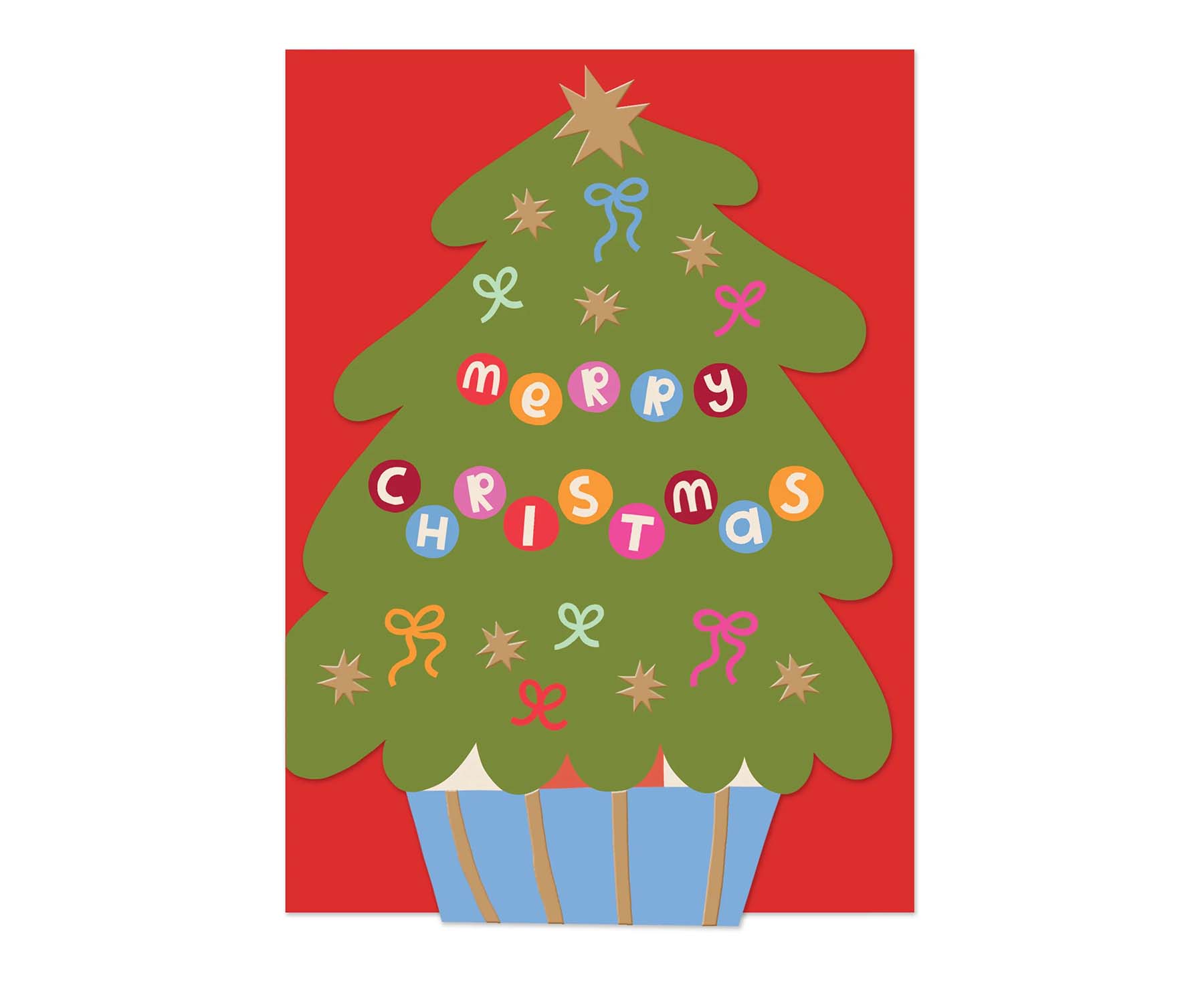 A gorgeous big bushy Christmas tree compete with gold foiled details. One of Raspberry Blossom's joyous, fun and colourful Christmas cards.