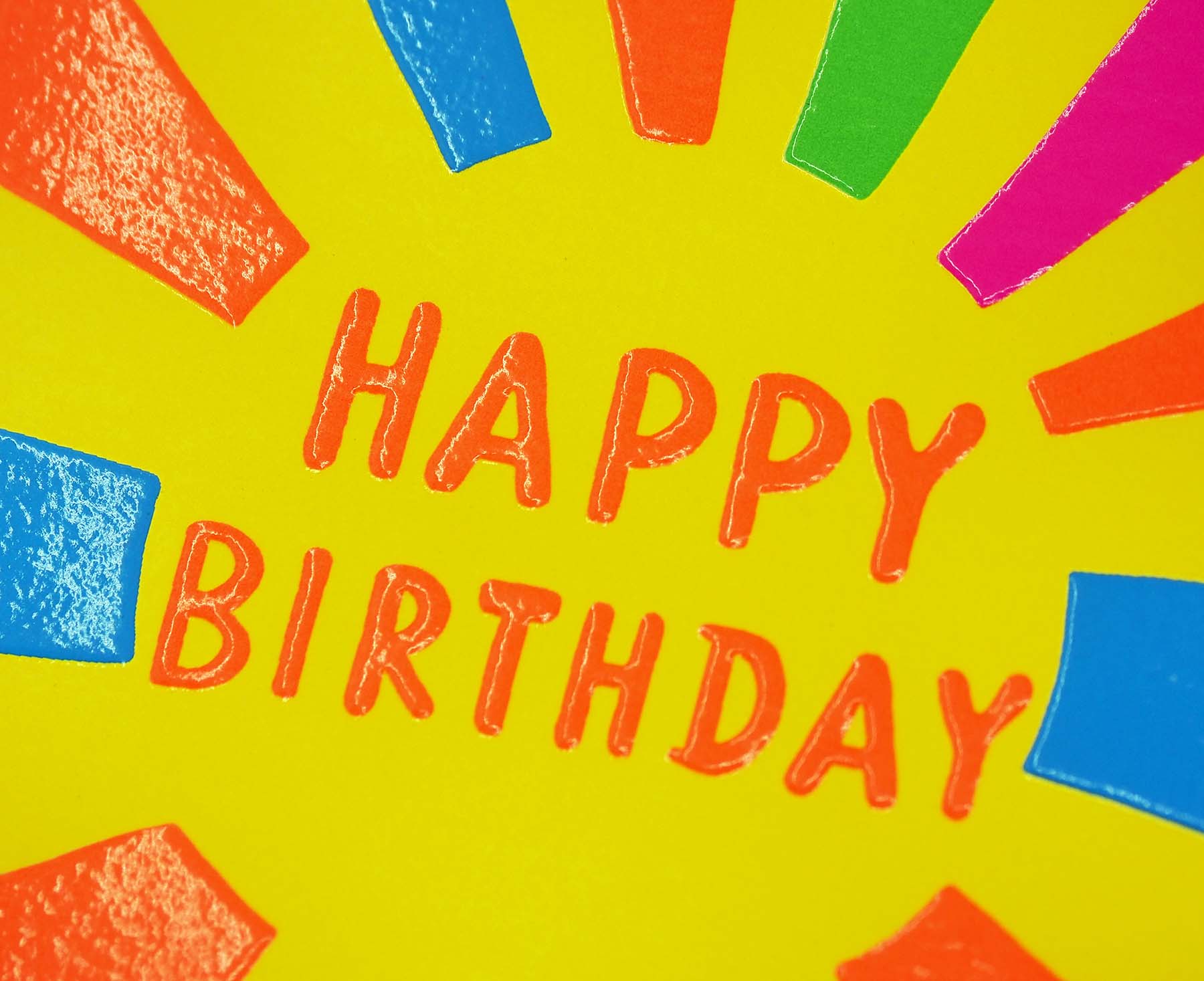 Featuring Earlybird's signature neon colours, glorious embossing and spot UV finish, this is possibly the most colourful sun you'll ever see on a birthday card.