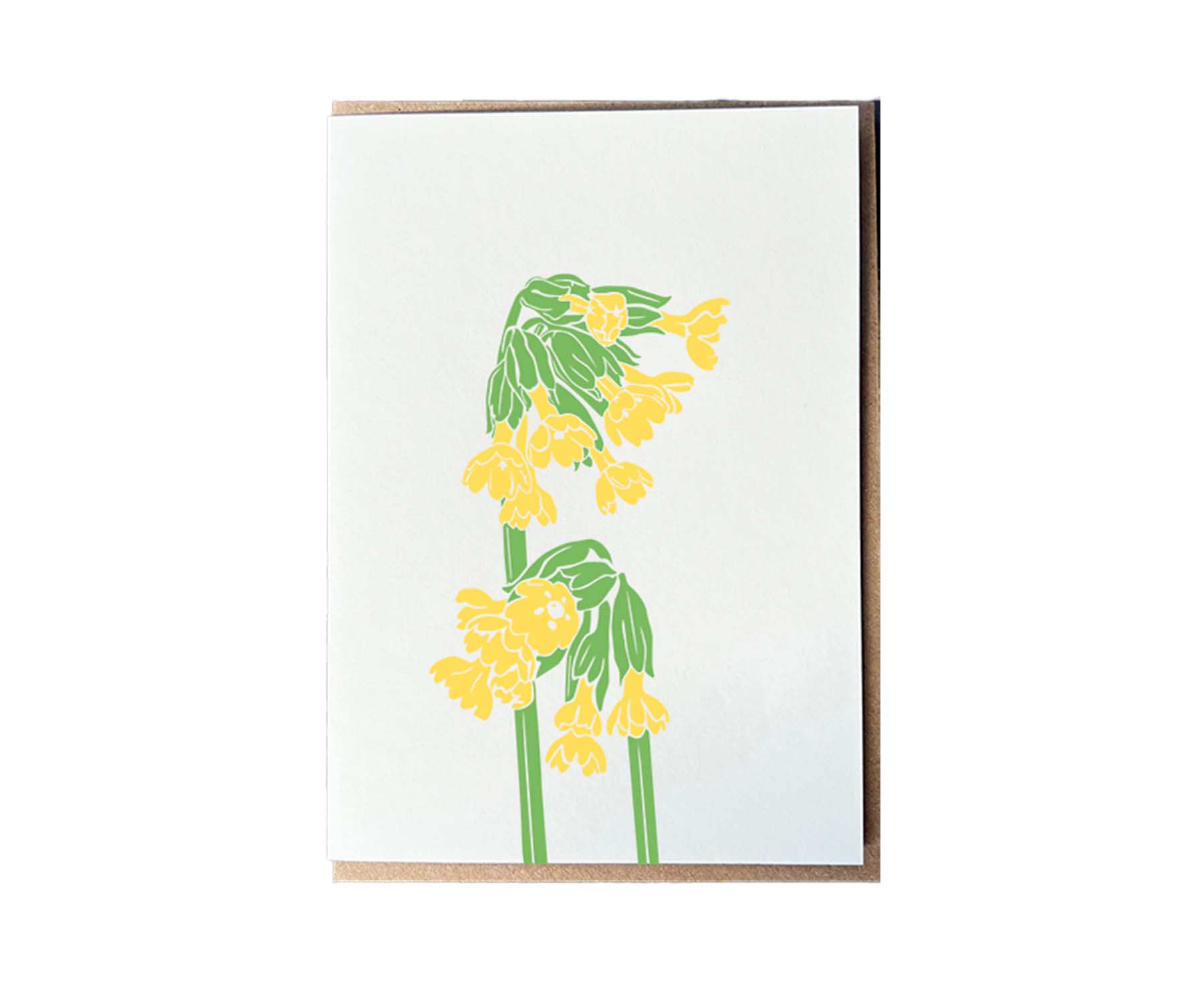 This bright little Cowslip card is part of Penguin Ink's beautiful Flora range. All Penguin Ink cards are Letterpress printed in England using a traditional Heidelberg press, giving them a tactile embossed finish on a thick textured card stock.