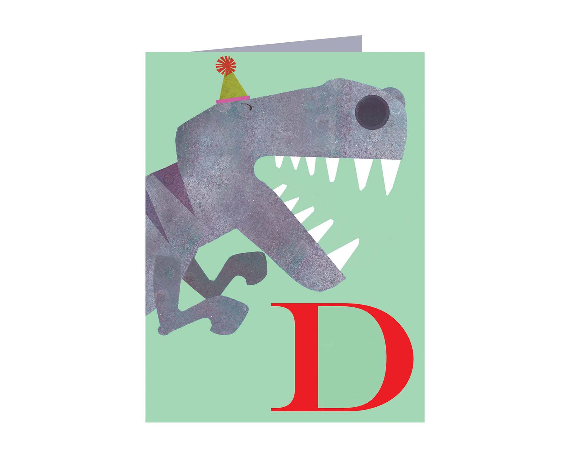 This beautifully drawn D for Dinosaur mini letter card is part of Kali Stileman's fabulous Tiddly Letter range, printed on tactile and lovely linen textured card. Their dinky size (and price) makes them ideal to combine into names or words to go on a little one's wall or shelf!