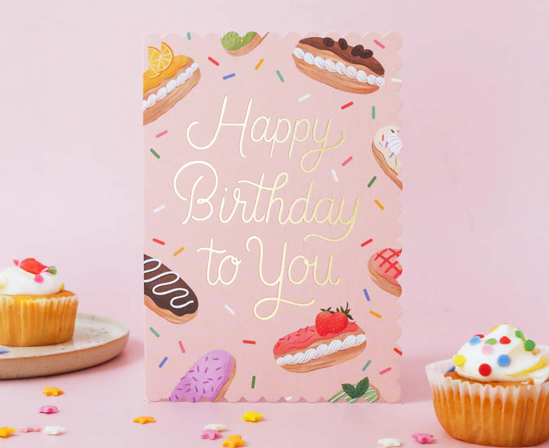 Eclairs Happy Birthday To You Foiled Scalloped Birthday Card
