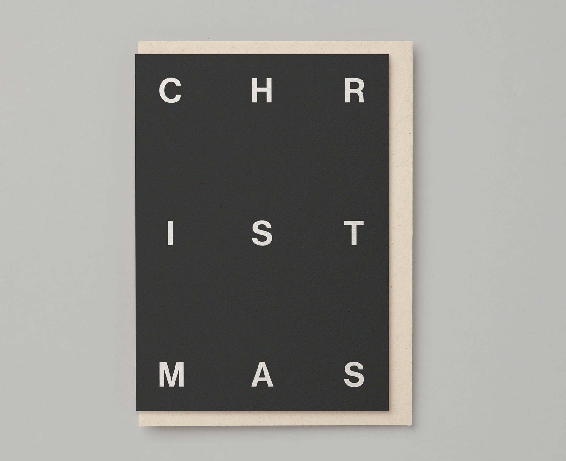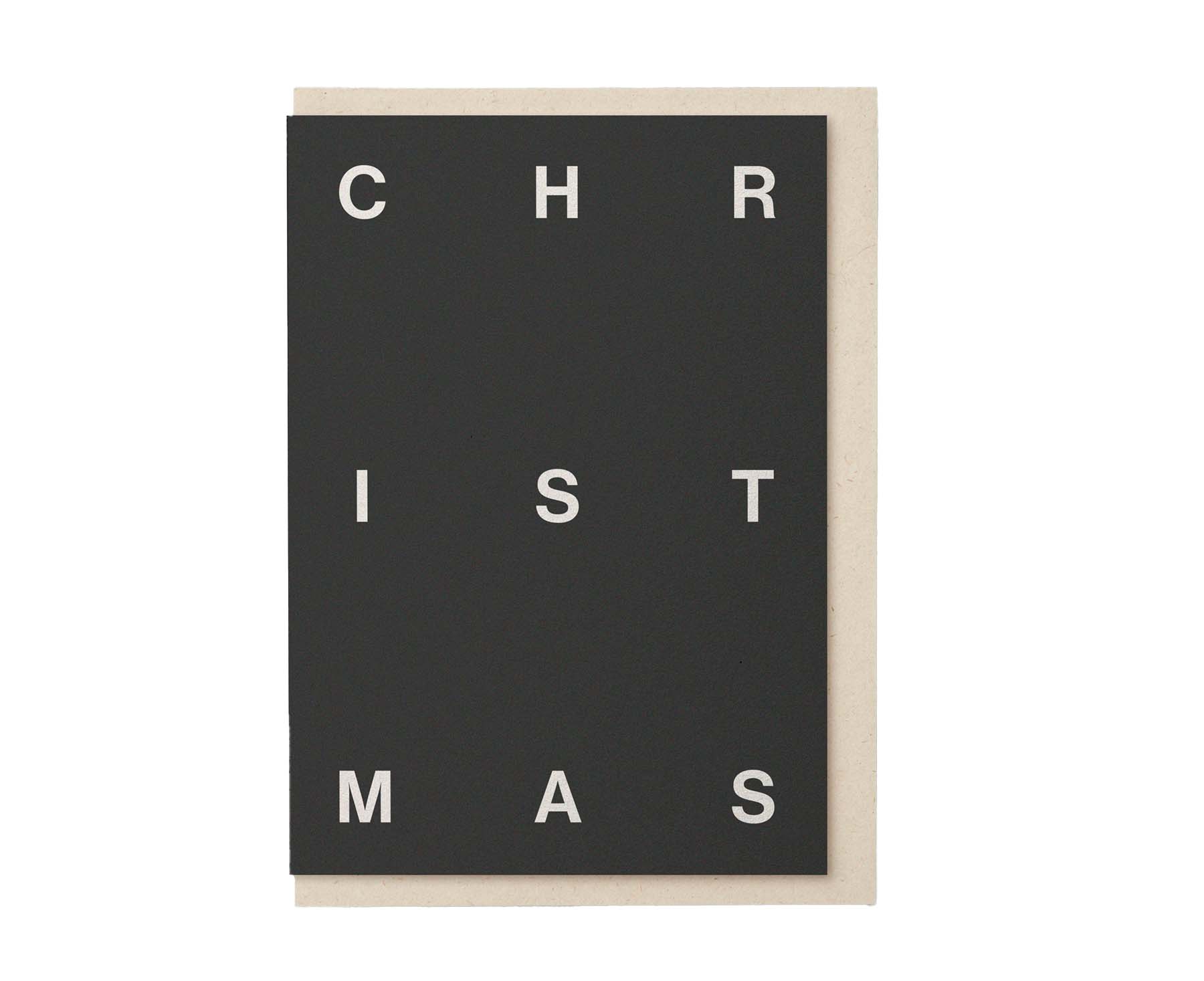 New this year from Kinshipped, this monochrome Christmas cards features beautiful off white embossed type in a sans serif font on a deep charcoal grey background. Printed sustainably in the UK and accompanied with a luxury, recycled cream envelope (cream as in the colour, no dairy products were used in the making of the envelope).