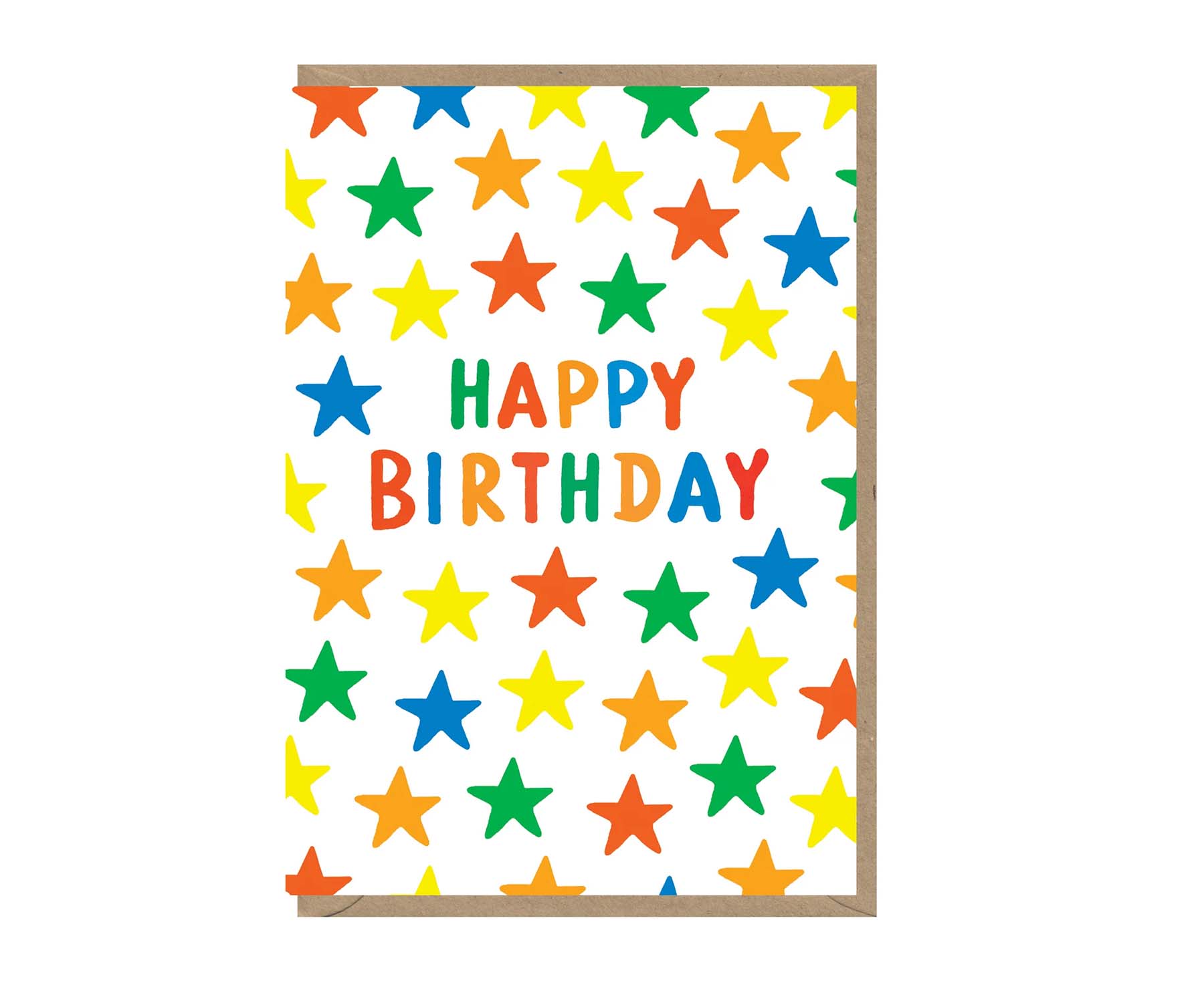 Featuring Earlybird's signature neon colours, glorious embossing and spot UV finish, this birthday card is bursting with cute colourful stars.