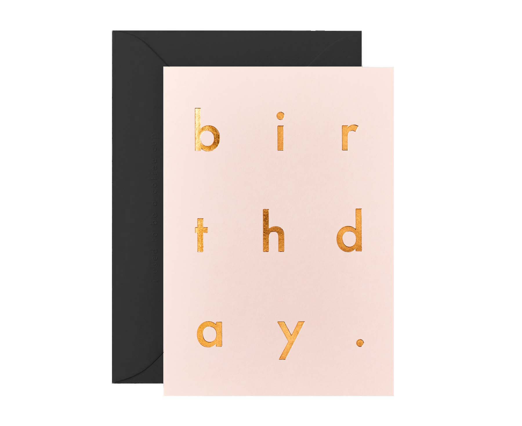 A beautiful gold foiled design on 385gsm Extract card in pink made from recycled coffee cups, supplied with a luxury recycled envelope.