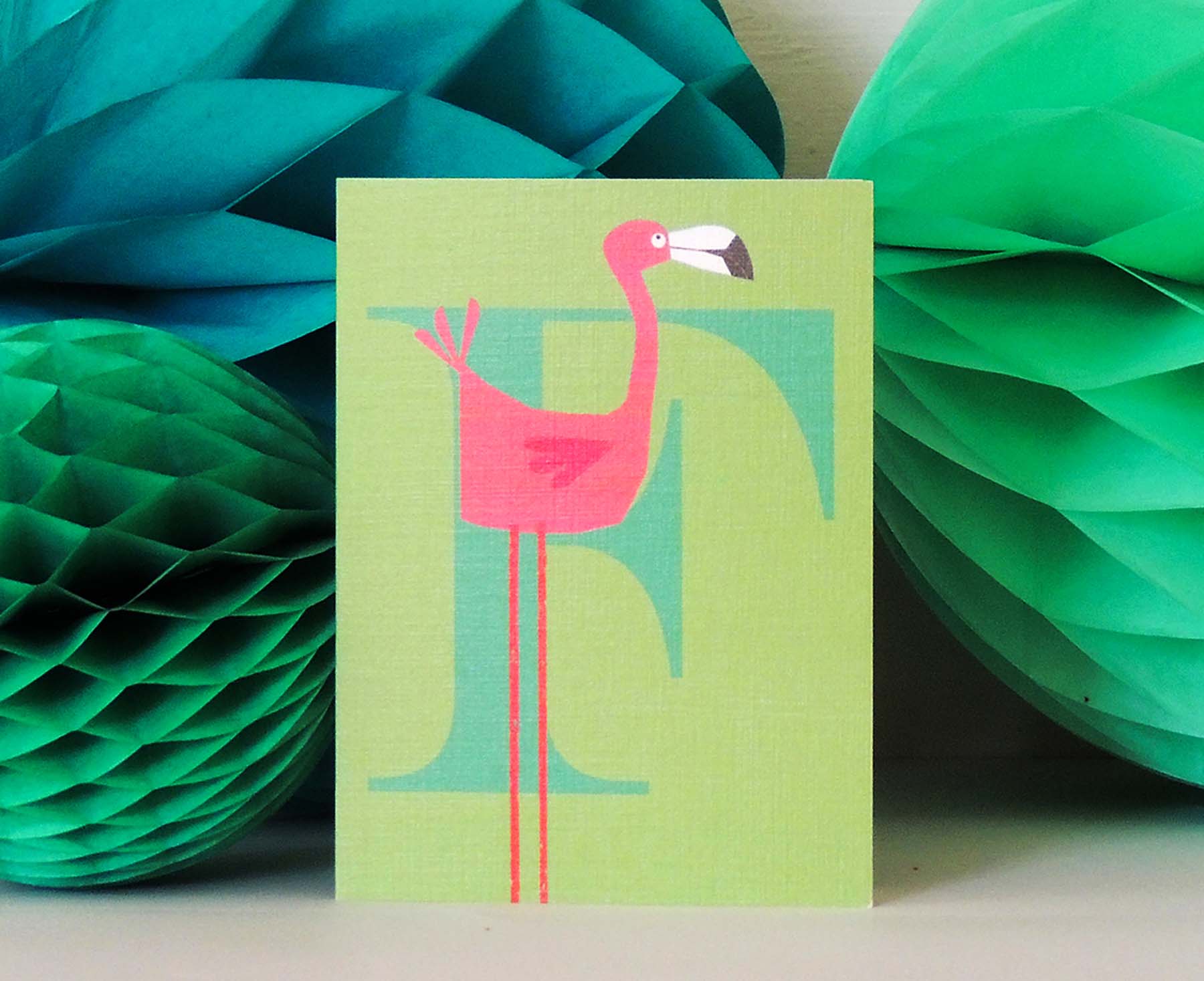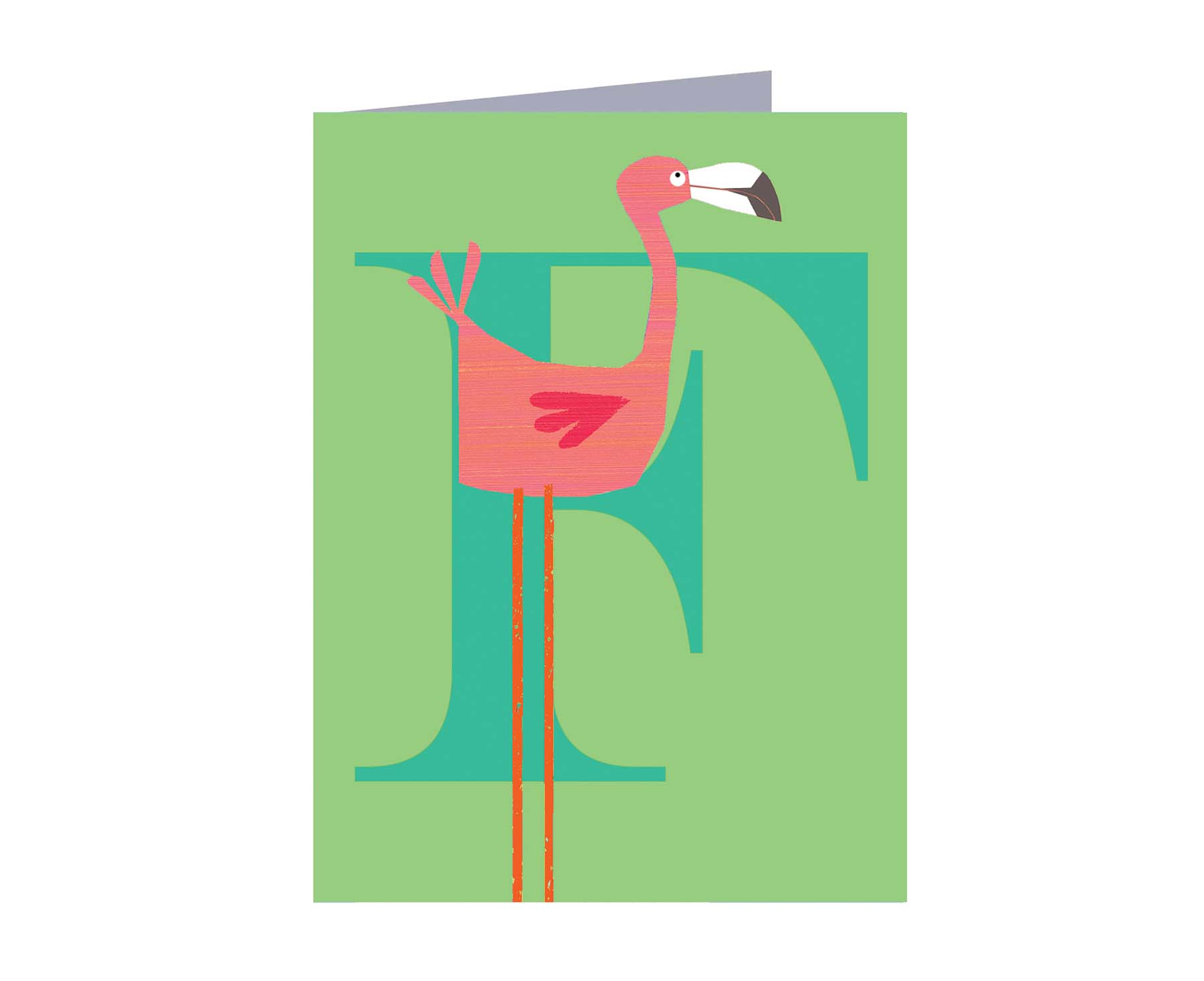 This beautifully drawn F for Flamingo mini letter card is part of Kali Stileman's fabulous Tiddly Letter range, printed on tactile and lovely linen textured card. Their dinky size (and price) makes them ideal to combine into names or words to go on a little one's wall or shelf!